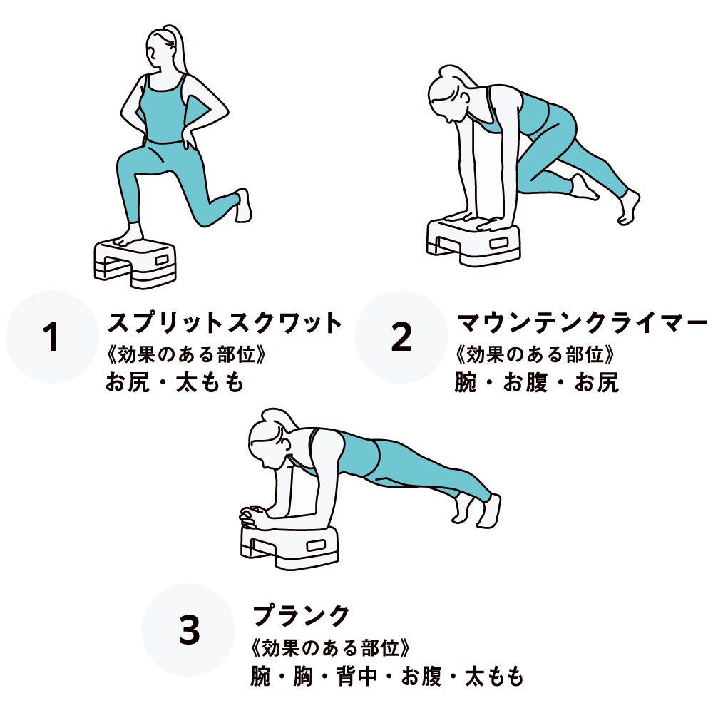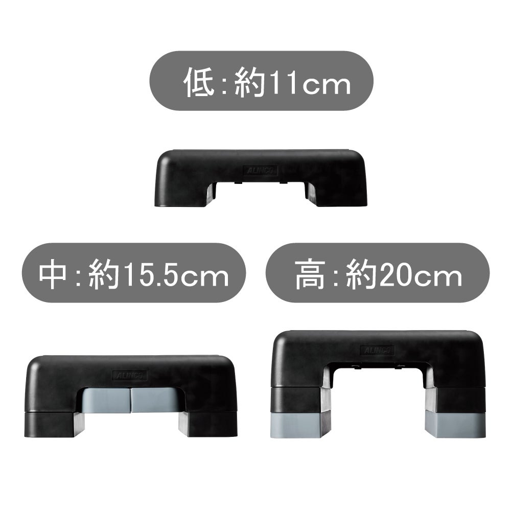 パーツの付け外しで段差の高さを3段階調節することが可能で、段差が高くなるにつれて脚にかかる負荷も強くなるため自身の体力や、身長に合わせて調節できます。