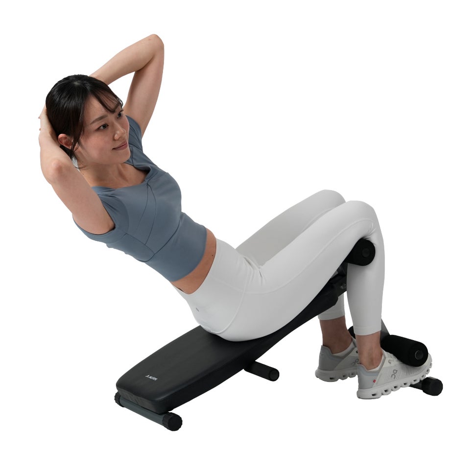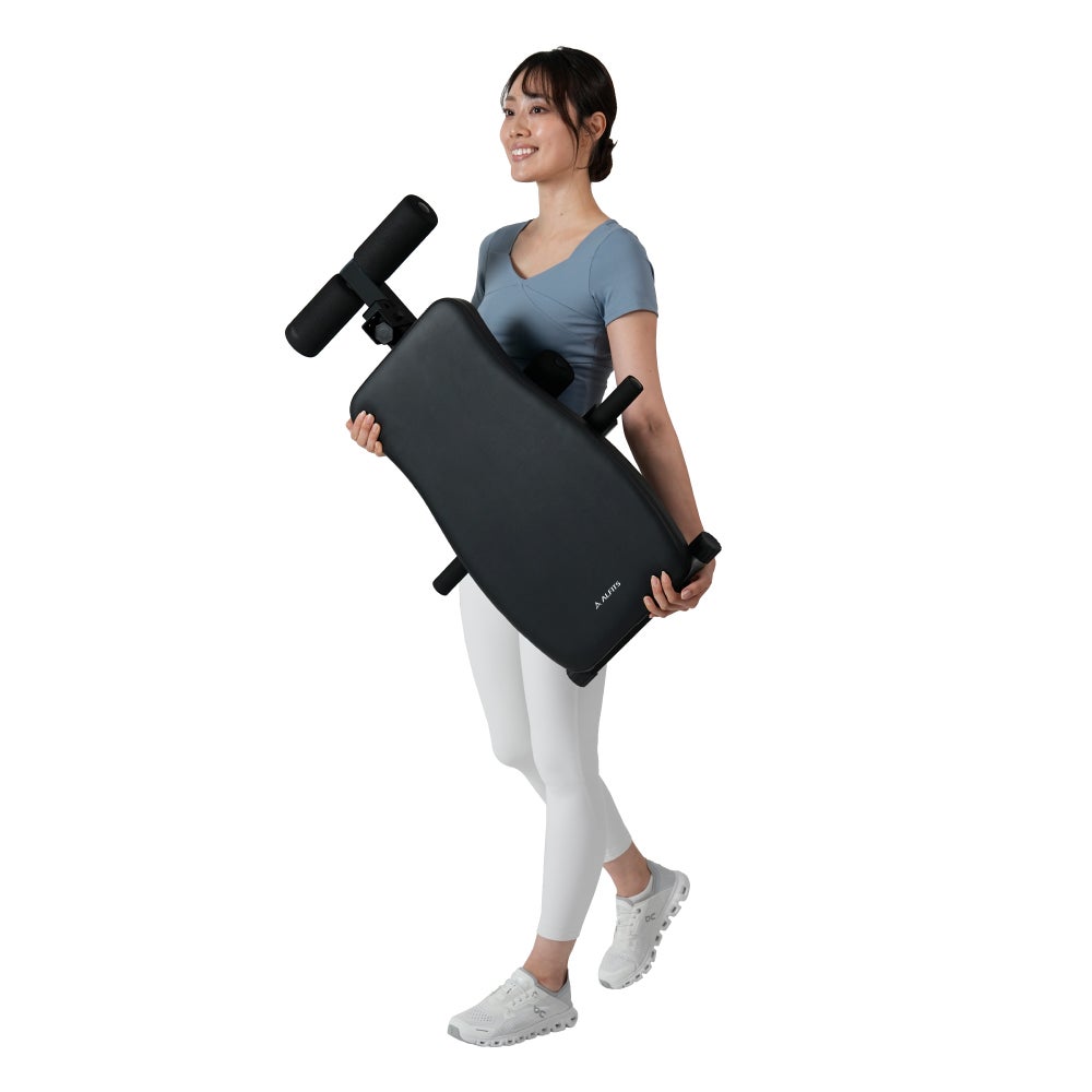 折りたたみ式で省スペース。厚みのあるクッションと柔らかいフットレストで運動をサポート。