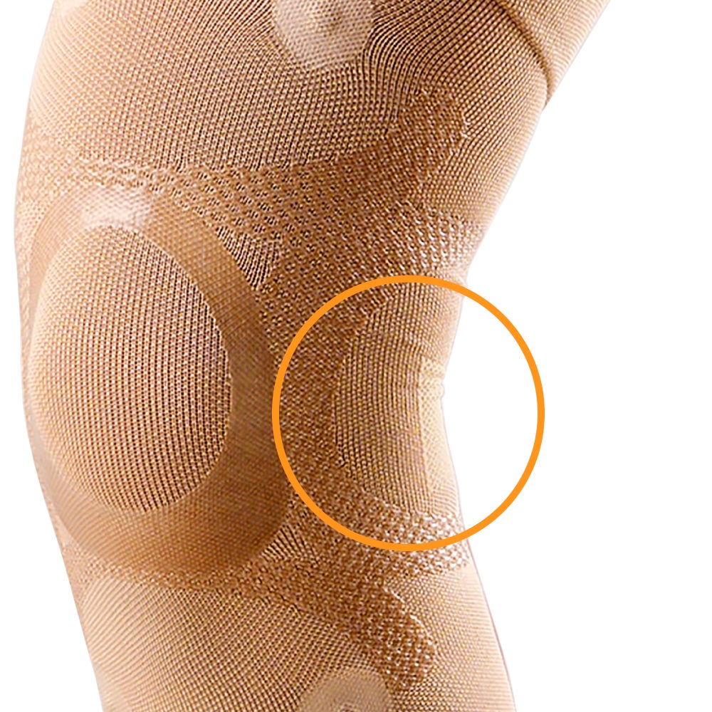 液状シリコーンをニット編み目へ立体的に浸透・形成し、塗布部は肌へ密着しテーピングのように効きます。