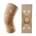 3次元シリコーンテーピングが筋肉や関節機能の働きを補助しながら4つの磁石が血行改善にアプローチ。