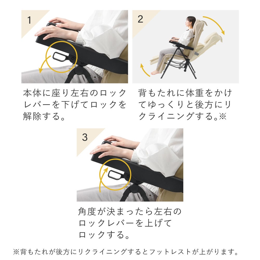 | 本体サイズ | W600×D740×H1,190mm リクライニング最大時:W600×D1,450×H930mm |