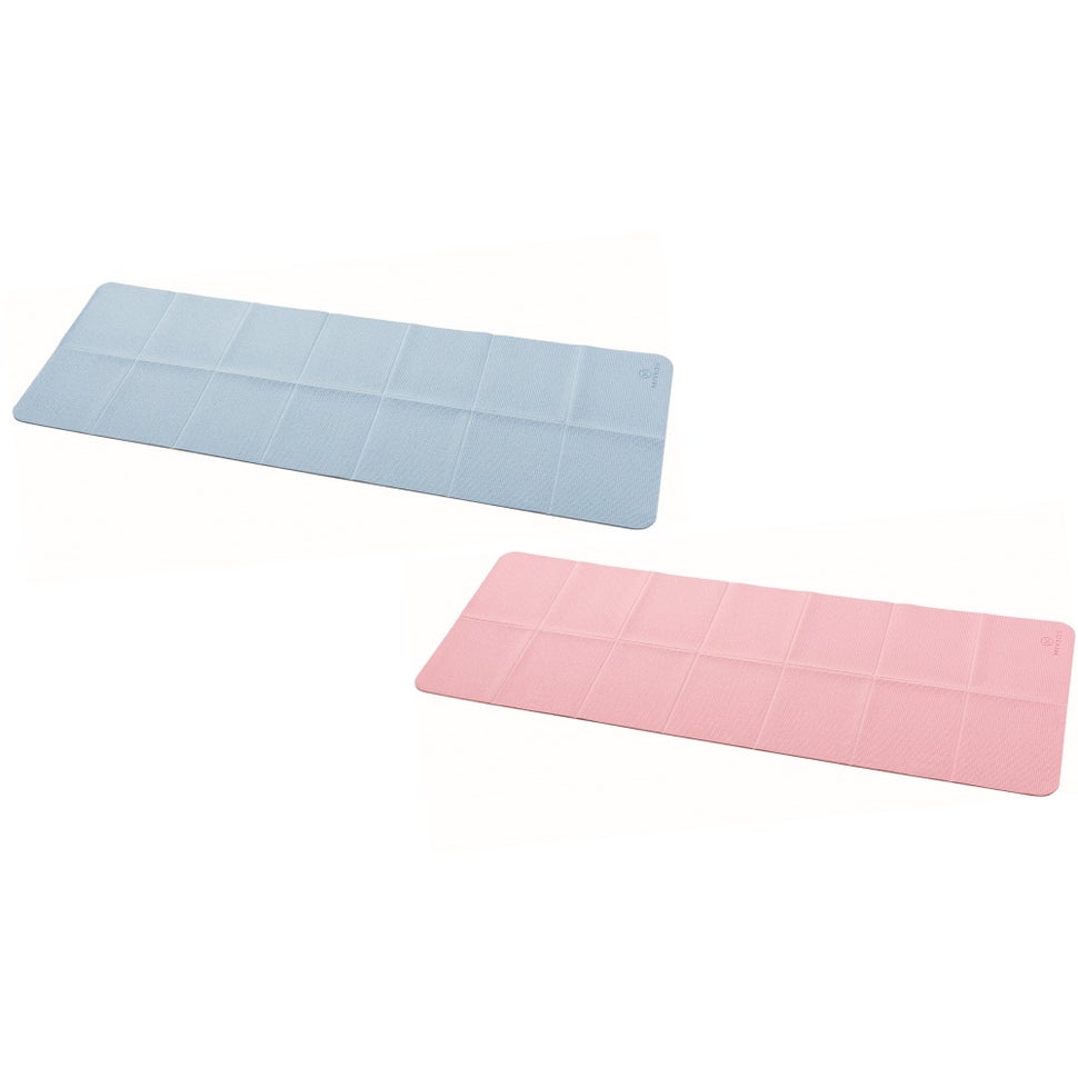 コンパクトに折りたためるヨガマット。折りたためばわずかA4用紙ほどのサイズ感で使わない時もかさばりません。