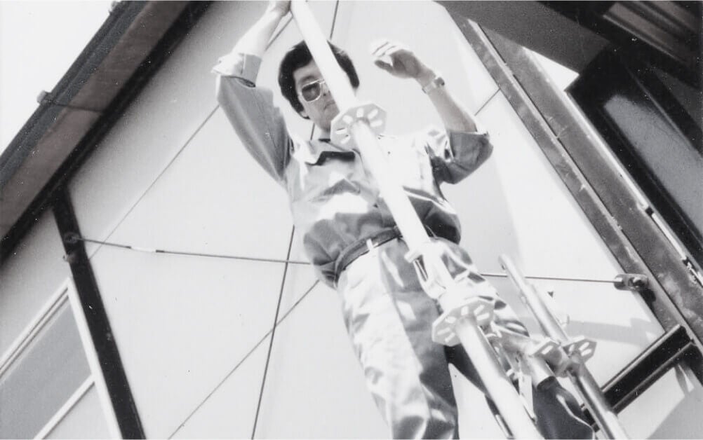 建築用仮設機材のクランプ・パイプサポート・ジャッキベースなどを手がけるようになる。部品製造と並行して、自社ブランド製品の開発を進め、1960年にはついに自社開発の足場第一号が完成する。