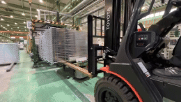 完成した製品は、作業者がフォークリフトで製品置き場に移動させます。